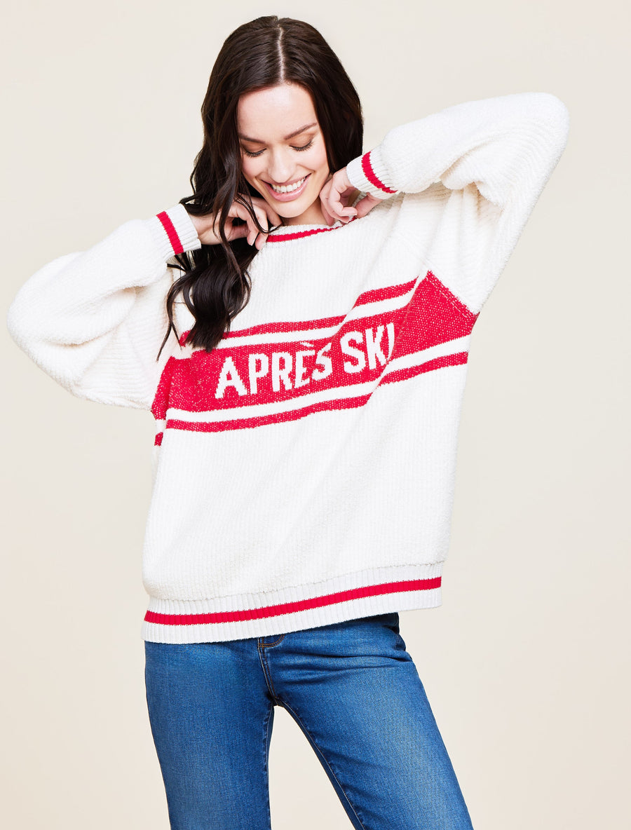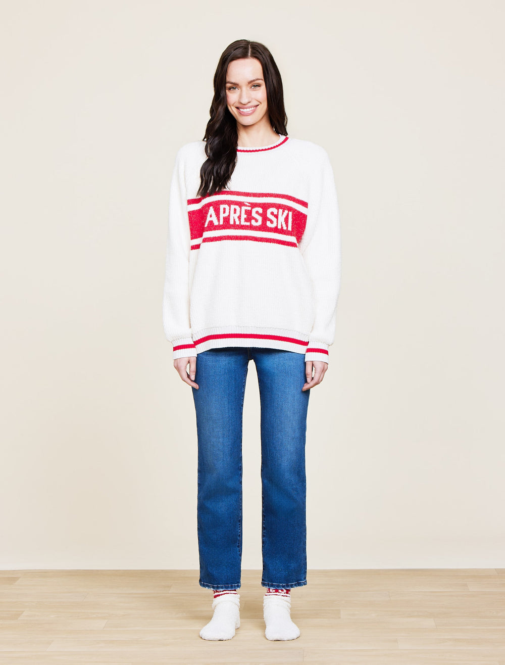 Stay comfy and stylish with the CozyChic® Cotton Apres Pullover. Made with soft CozyChic® rib fabric, this pullover features a classic raglan design and a playful "apres ski" word on the front. The cotton intarsia adds a touch of texture, while the sports stripe rib detailing on the neck, cuffs, and waistband completes the look. Perfect for lounging or hitting the slopes.