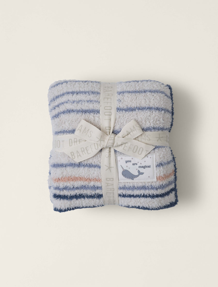 Crafted with soft and cozy CozyChic® material, this Narwhal stroller blanket features a unique stripe artwork design with contrast color tipping at the borders. Complete with a cotton canvas patch of a Narwhal and the inspiring quote "you are magical," this blanket provides both warmth and wonder to your little one. Pairs nicely with our CozyChic® Narwhal Buddie. Imported.
