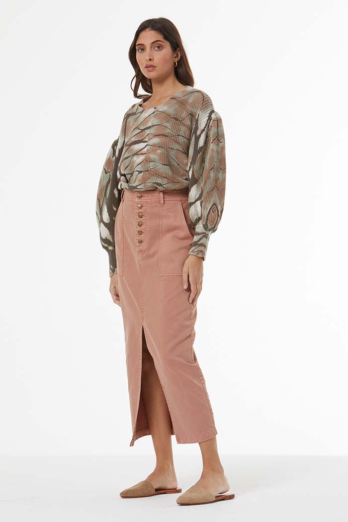 Cool and casual, the Dara Midi Skirt is ready for the weekend, pack for a vacation or dress up with a silk blouse or down with your go-to knit .