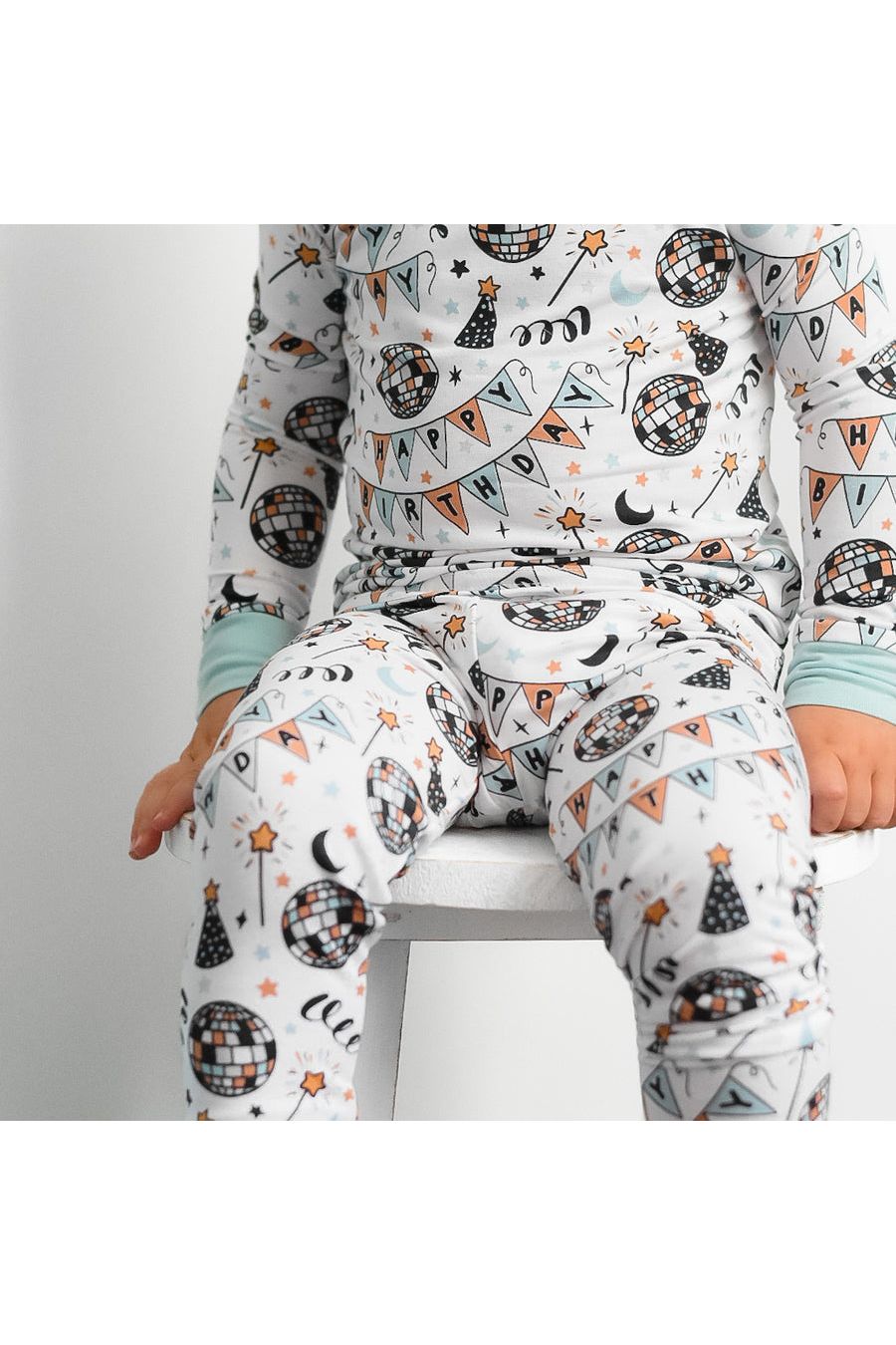 The Disco Birthday Boy Dream set is here to turn any ordinary night into a wild celebration! Decked out with classic long sleeve and pant pajama styling, your little one is ready to boogie the night away - wink wink!!