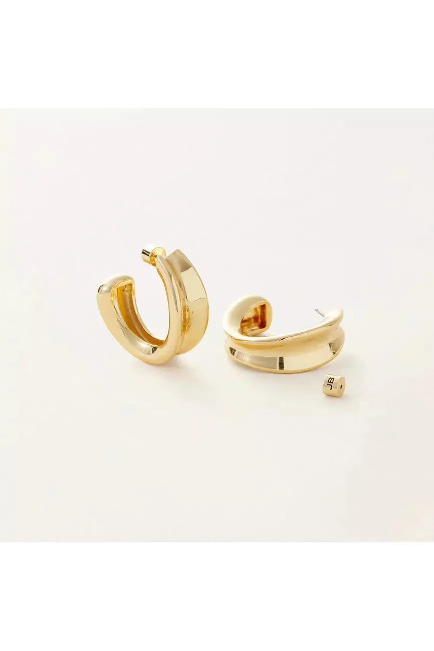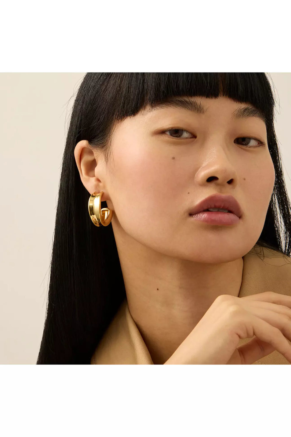 A large pair of high-shine hoops featuring sculptural curves and a rounded tail, as seen on Selena Gomez. Despite their bold body, they are lightweight, thanks to a hollowed out design. Finished in high-polish gold.