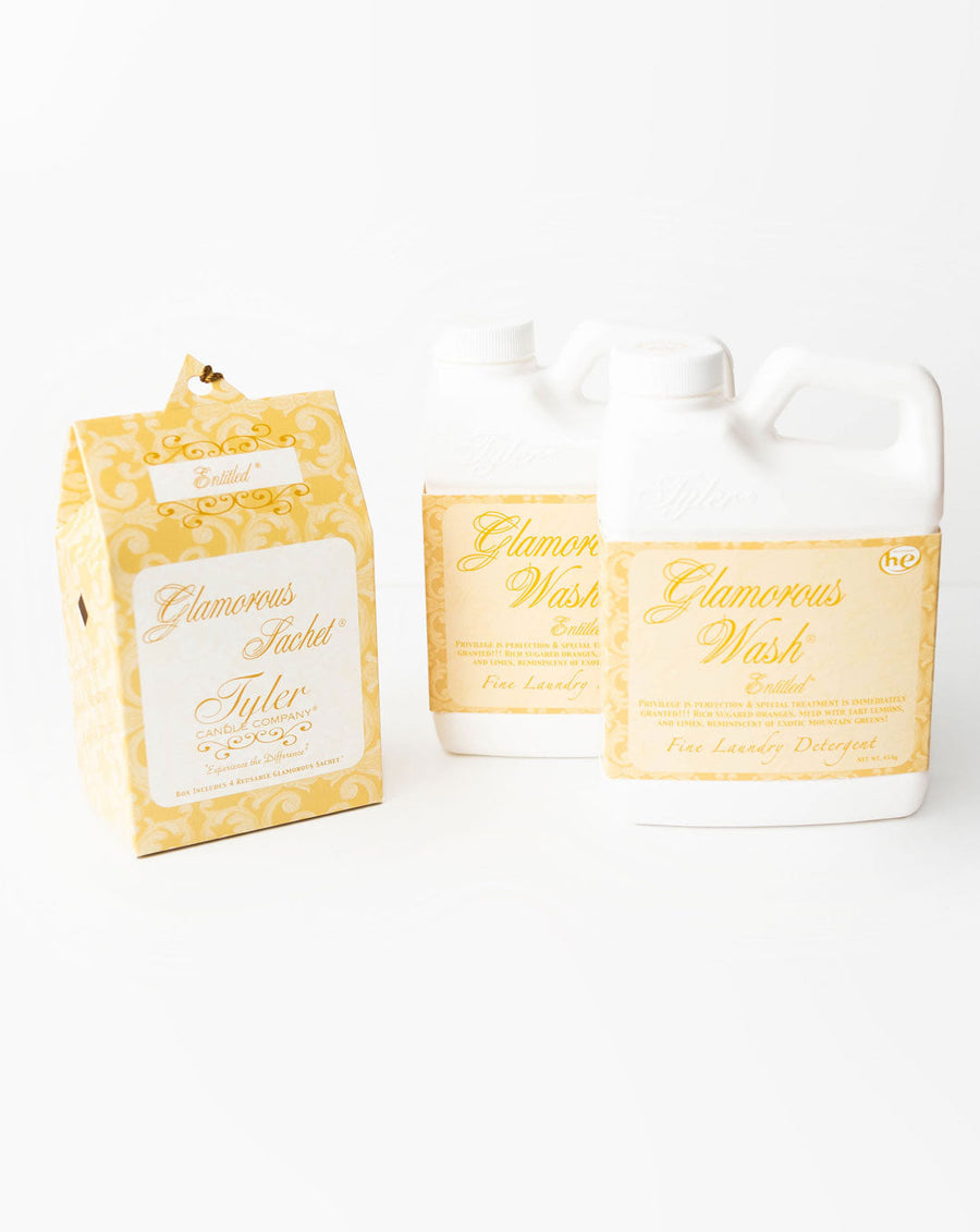 Share your love of Tyler's Entitled today! This three-piece gift pack includes one Glamorous Sachet and two 16oz Glamorous Wash bottles. A great way to explore and share Entitled® with Privilege is perfection & special treatment is immediately granted!!! Rich sugared oranges, meld with tart lemons, and limes, reminiscent of exotic mountain greens!