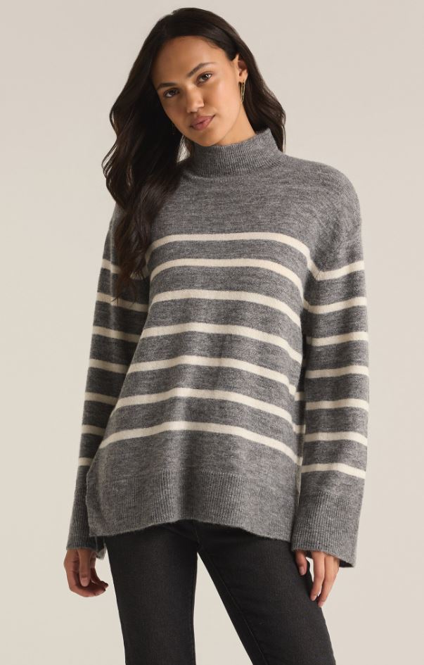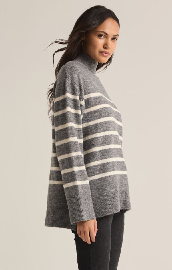 Cozy up in this relaxed fit turtleneck sweater, designed with stripes and a longer length for extra coverage and comfort. Made from ultra-soft yarns, it’s a must-have piece for effortless cool weather styling.