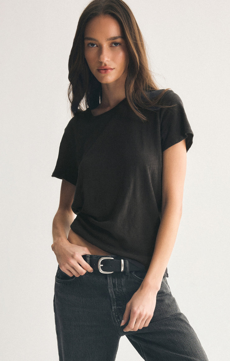 Softness meets style in this luxe brushed slub jersey tee, cut in a relaxed, roomy silhouette. With an easy crew neckline, it's the tee you'll wanna wear all season.