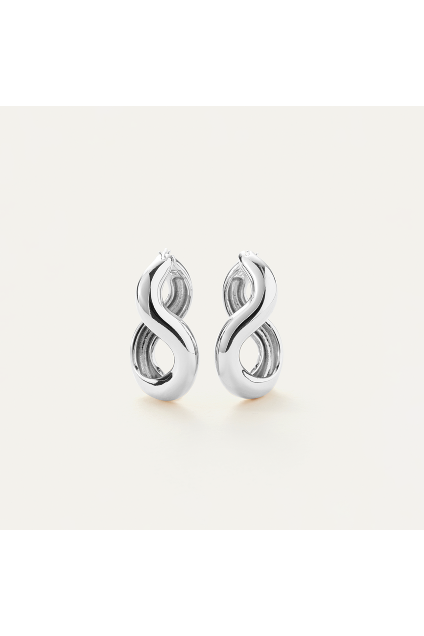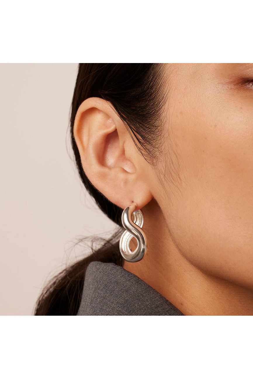 Organic in shape, the fluid design of these hoops surrounds the earlobe in a playful—yet elevated—way. To wear, lift post and gently push into opening. Finished in high-polish silver.