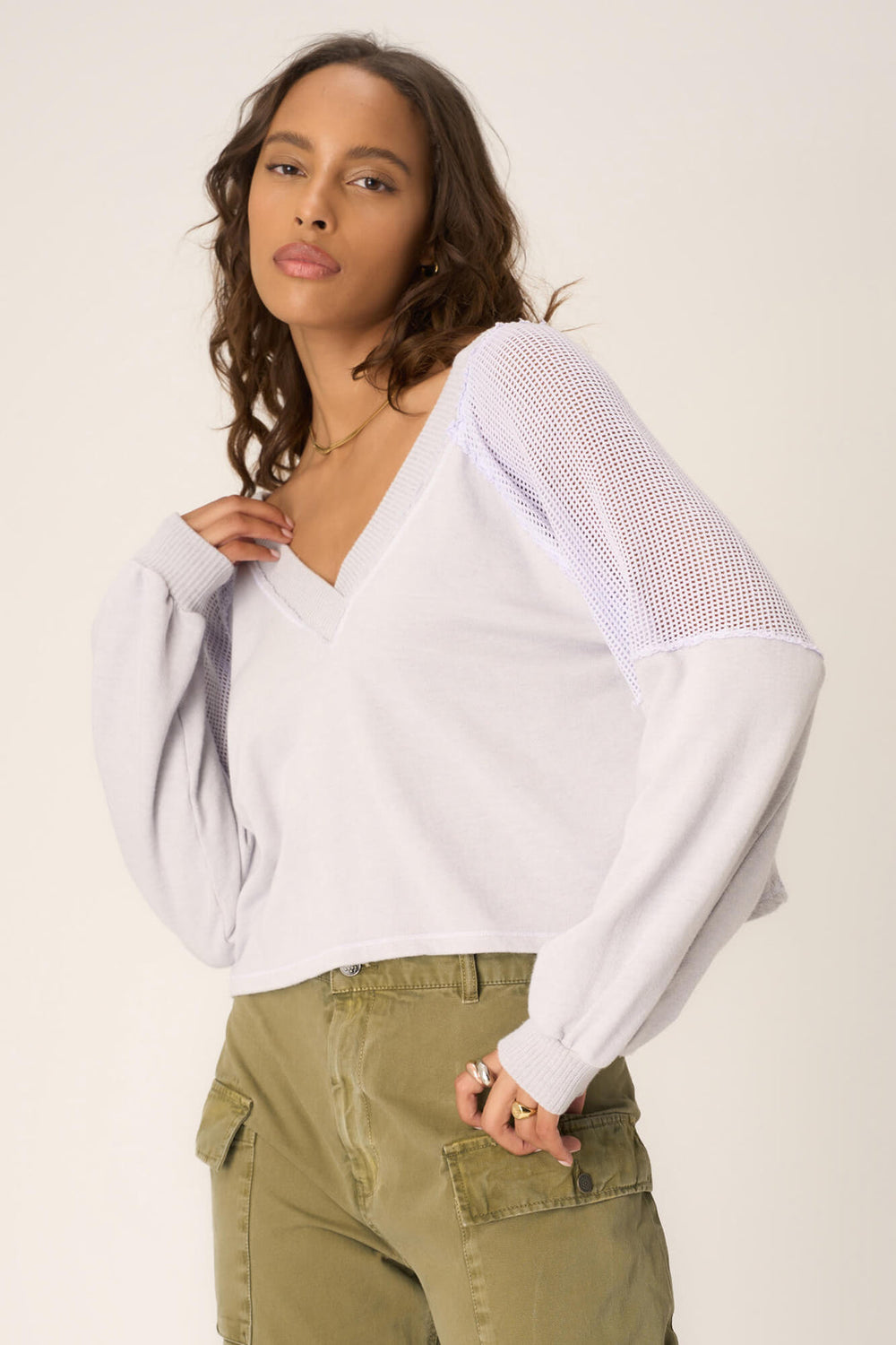 The Harley Seamed V-Neck Pullover features an overall relaxed fit and a lightweight fleece fabric. We left no detail overlooked: oversized v-neckline and back silhouette, contrast rib edging, banded cuffs, and mesh fabric sleeves. Pair with your fave pair of baggy denim for the coolest weekend vibe.