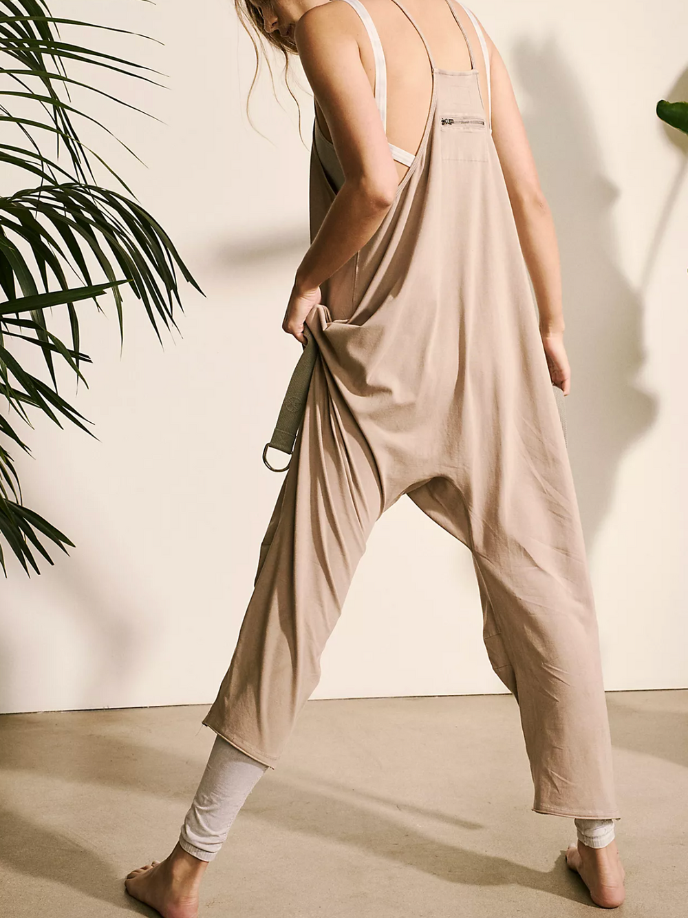 This soft and comfy onesie features a slouchy, relaxed-fitting design with a dropped crotch and convenient side pockets.
