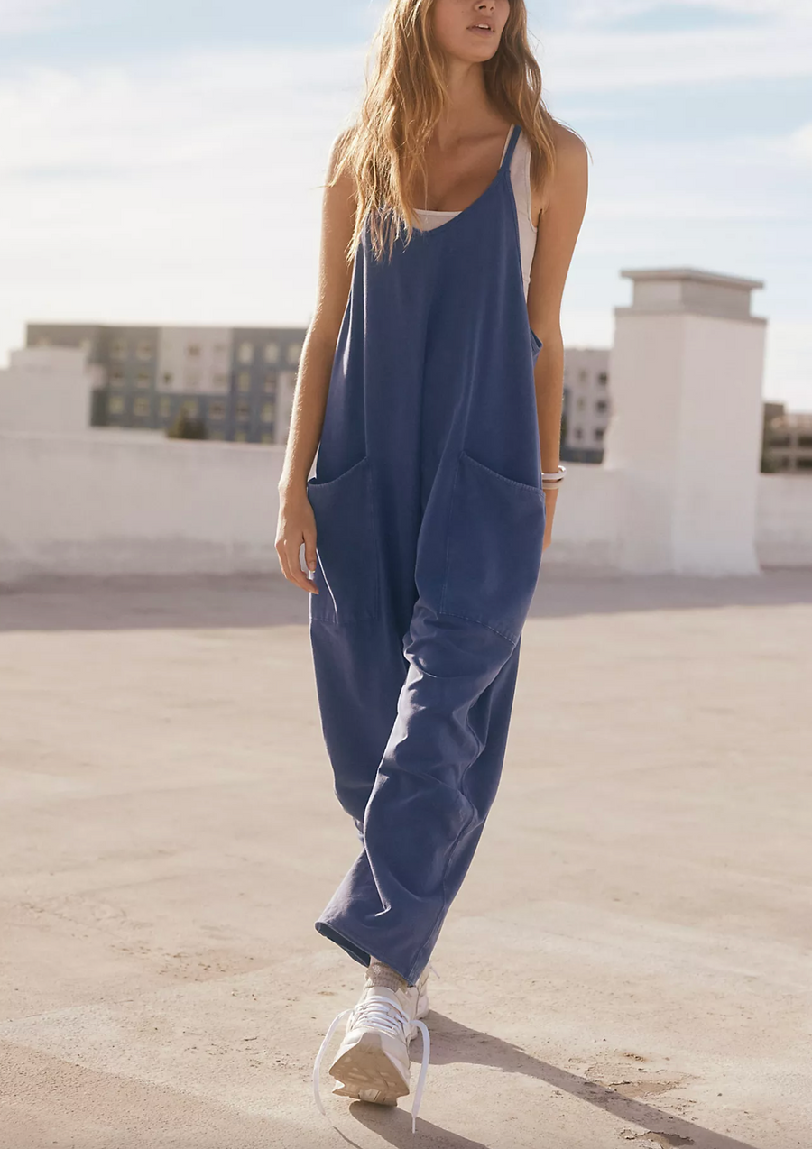 This soft and comfy onesie features a slouchy, relaxed-fitting design with a dropped crotch and convenient side pockets.