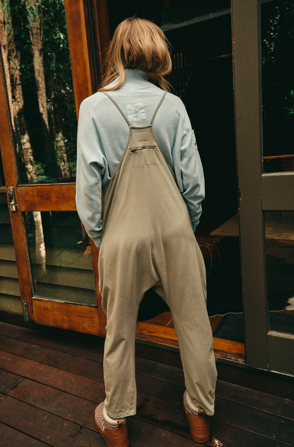 This soft and comfy onesie features a slouchy, relaxed-fitting design with a dropped crotch and convenient side pockets.