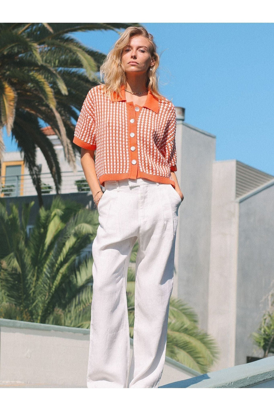 The Jacklyn shirt is the perfect knit button down with mother of pearl buttons. We are in love with this top worn with the matching Suzie Short.
