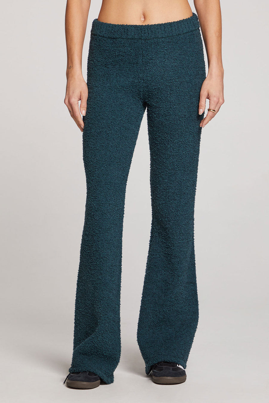The fun, fuzzy fabric looks as soft as it feels, while a low rise fit and generously flared legs lend a touch of glam.