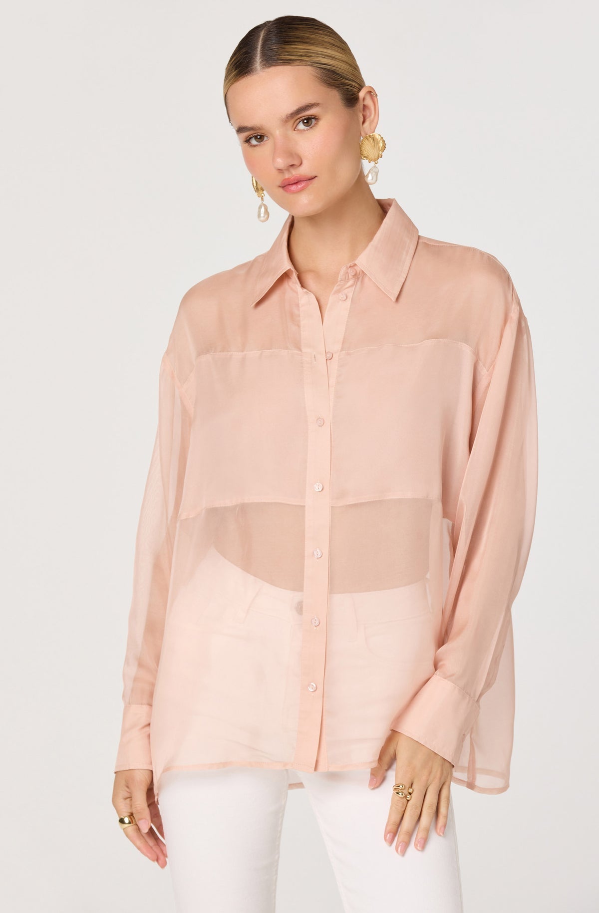 Meet the sheer button up top that elevates your everyday lineup. With its airy fabric and clean structure, it’s an easy choice for workdays or polished off duty looks.