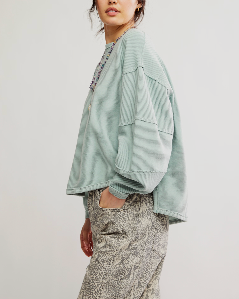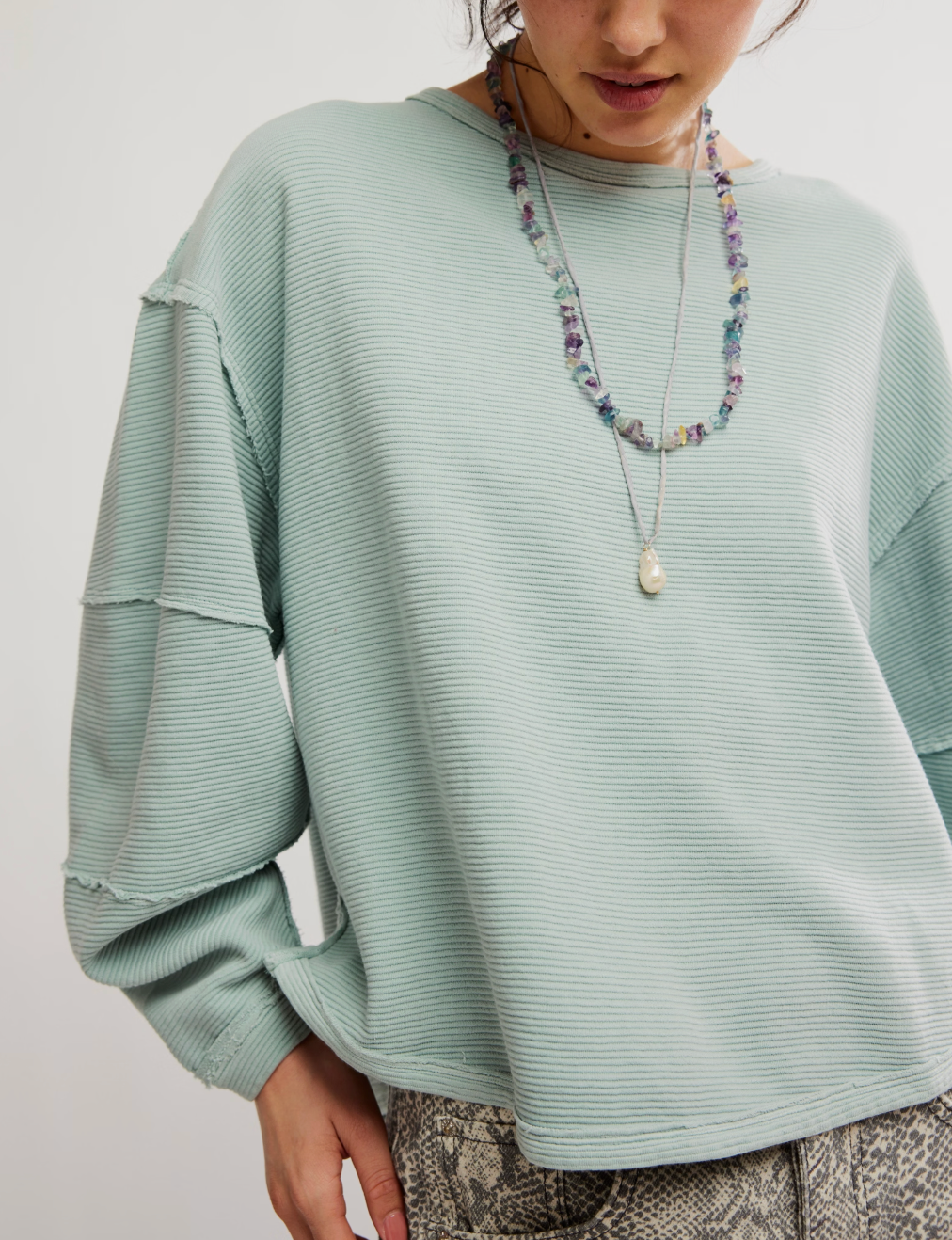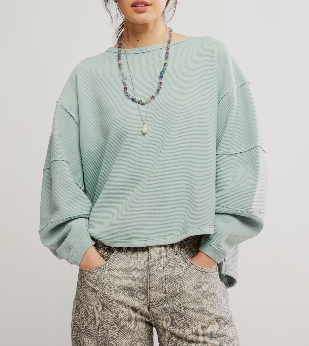 An elevated take on the classic tee, this long-sleeve from our We The Free collection features a ribbed fabrication and slouchy silhouette with defined seams and a scoop-neckline.