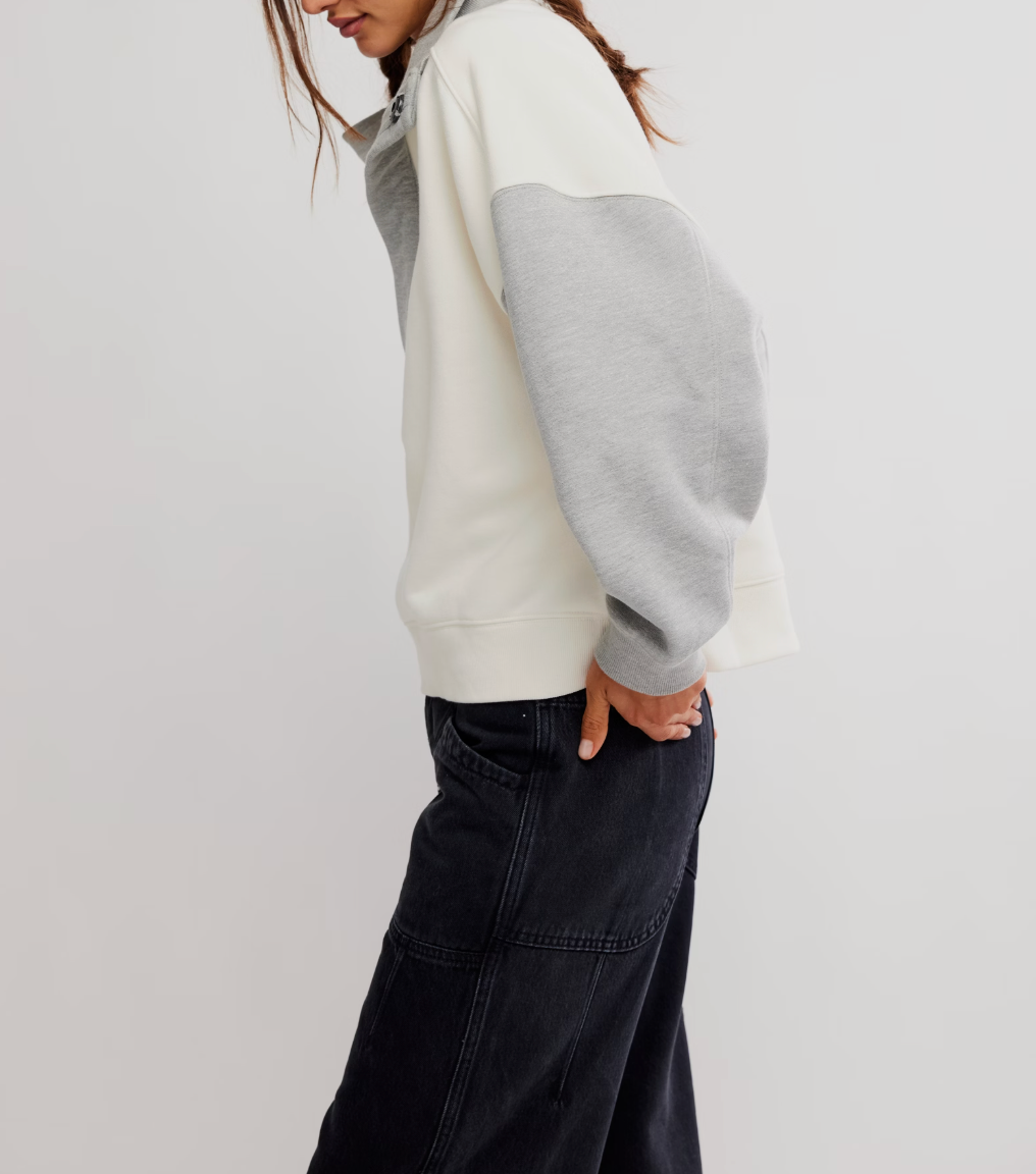 So cozy and essential, this wear-everywhere pullover features a funnel neck design with quarter-button detail and ribbed trimming for added dimension.