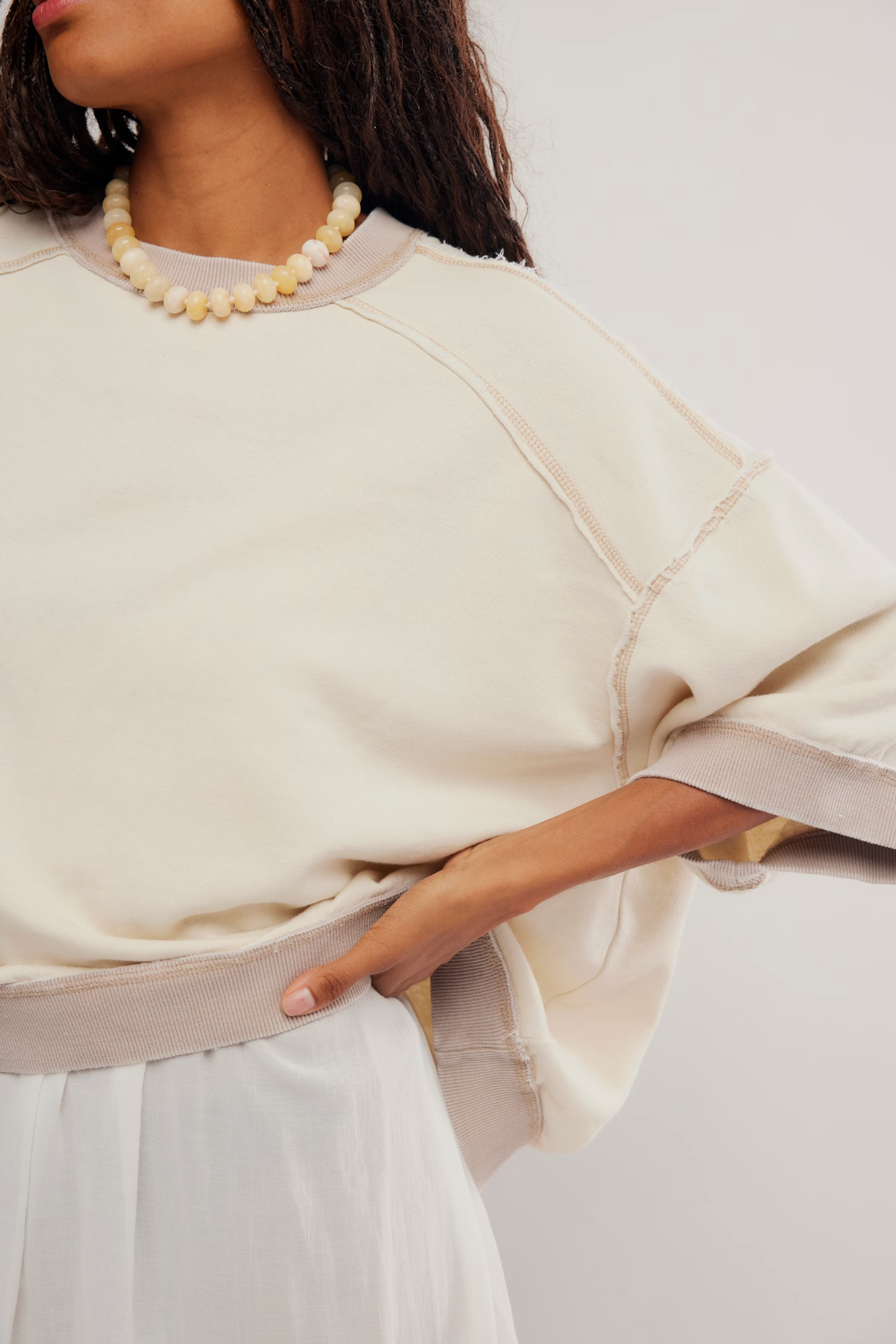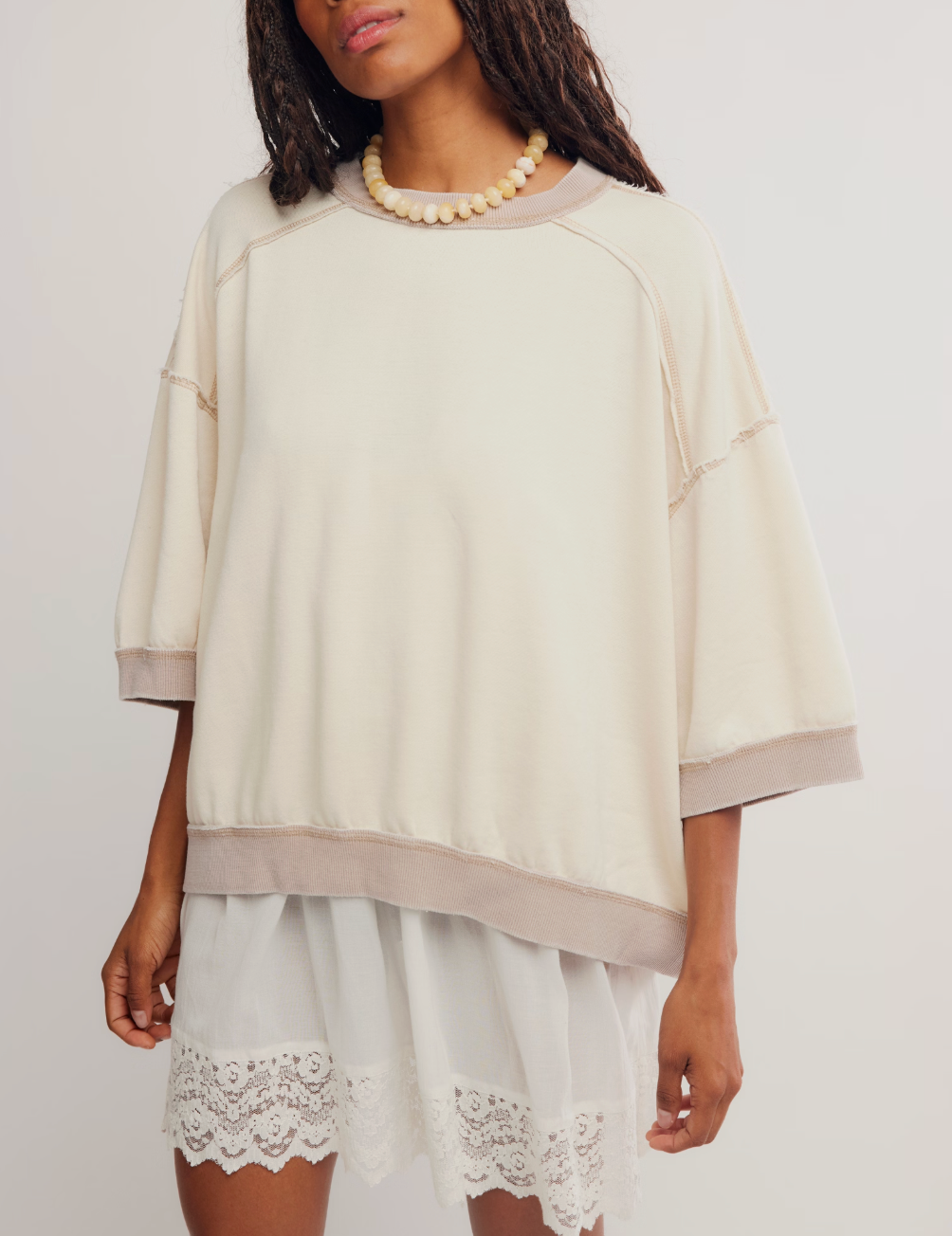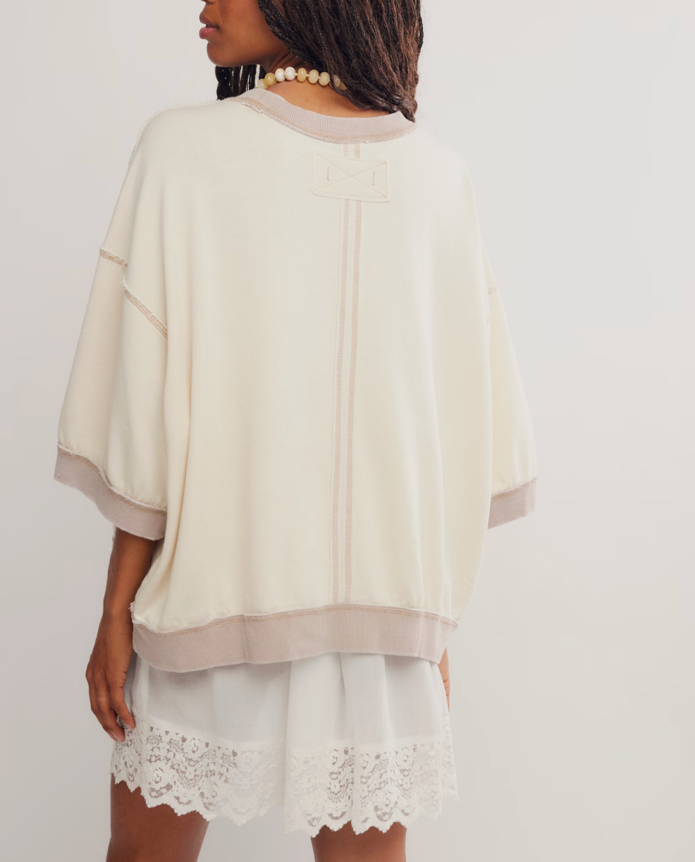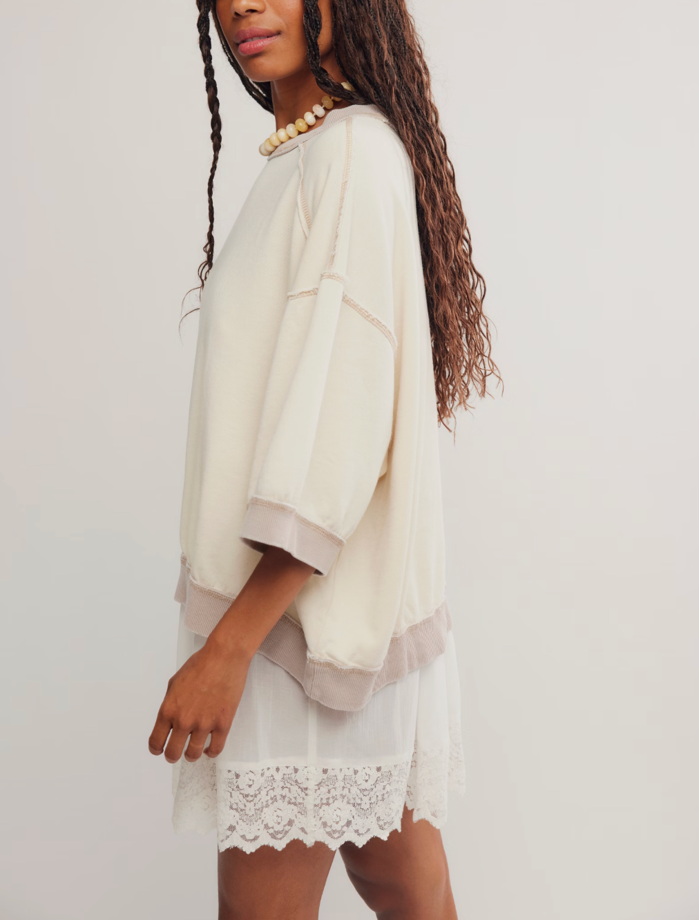 Laidback to the max, this effortless pullover from We The Free is featured in a boxy, ¾ sleeve style in a washed fleece fabrication for the perfect lived-in look.
