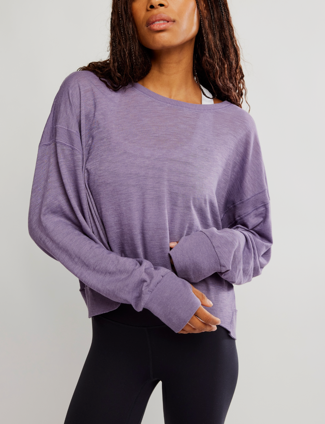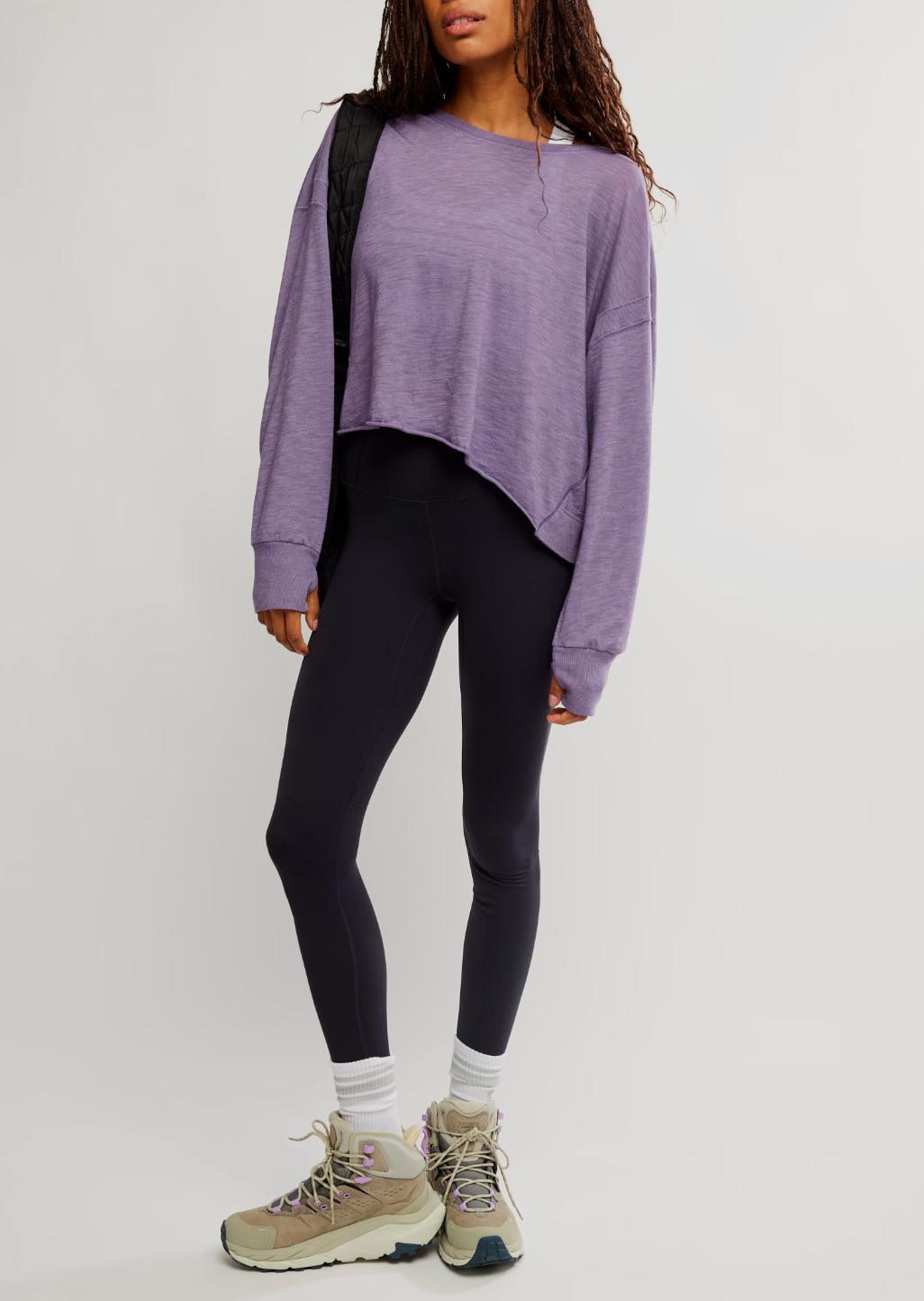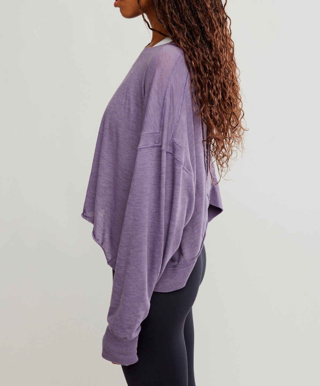 Perfect for going to or from a workout, this layer features a soft fabrication, slouchy crop and flattering back opening.