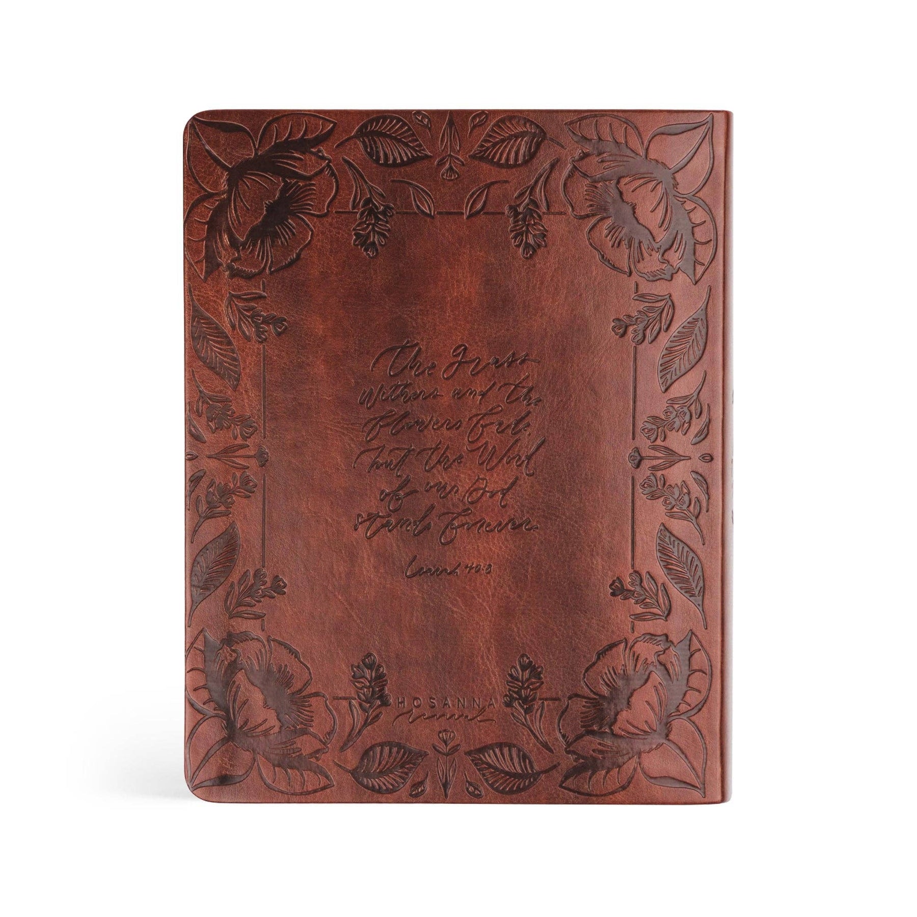 Hosanna Revival Retail Price: $64.90 Suggested Retail Price: $65.00-$70.00 Colombia’s “village of flowers,” Santa Elena—where wildflowers grow high on the mountain tops—was the inspiration for this simply beautiful leather-like Bible. Historically, farmers in Santa Elena journeyed down from the mountains with their backs loaded with flowers ready to sell in the nearby town in exchange for provisions. The untamed beauty of these wildflowers crouched among the blades of grass in Santa Elena inspired the bold design and Scripture on this Bible: “The grass withers and the flowers fade, but the Word of our God stands forever” (Isaiah 40:8). In contrast to the withering and wilting that will inevitably happen to even the most beautiful of flowers, the Word of God remains alive and fresh and will stand regardless of time or tragedy.