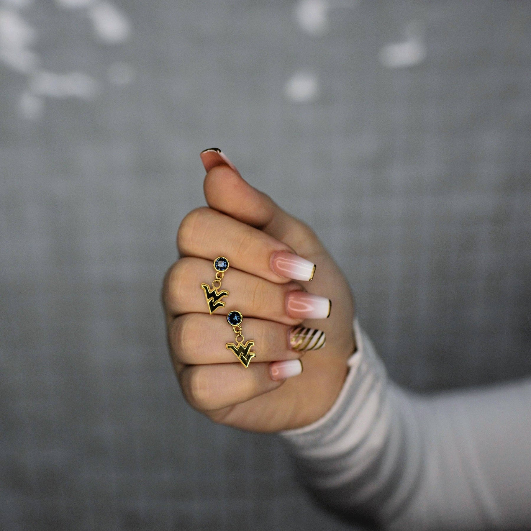 WVU Flying WV Gold Plated Crystal Drop Earrings