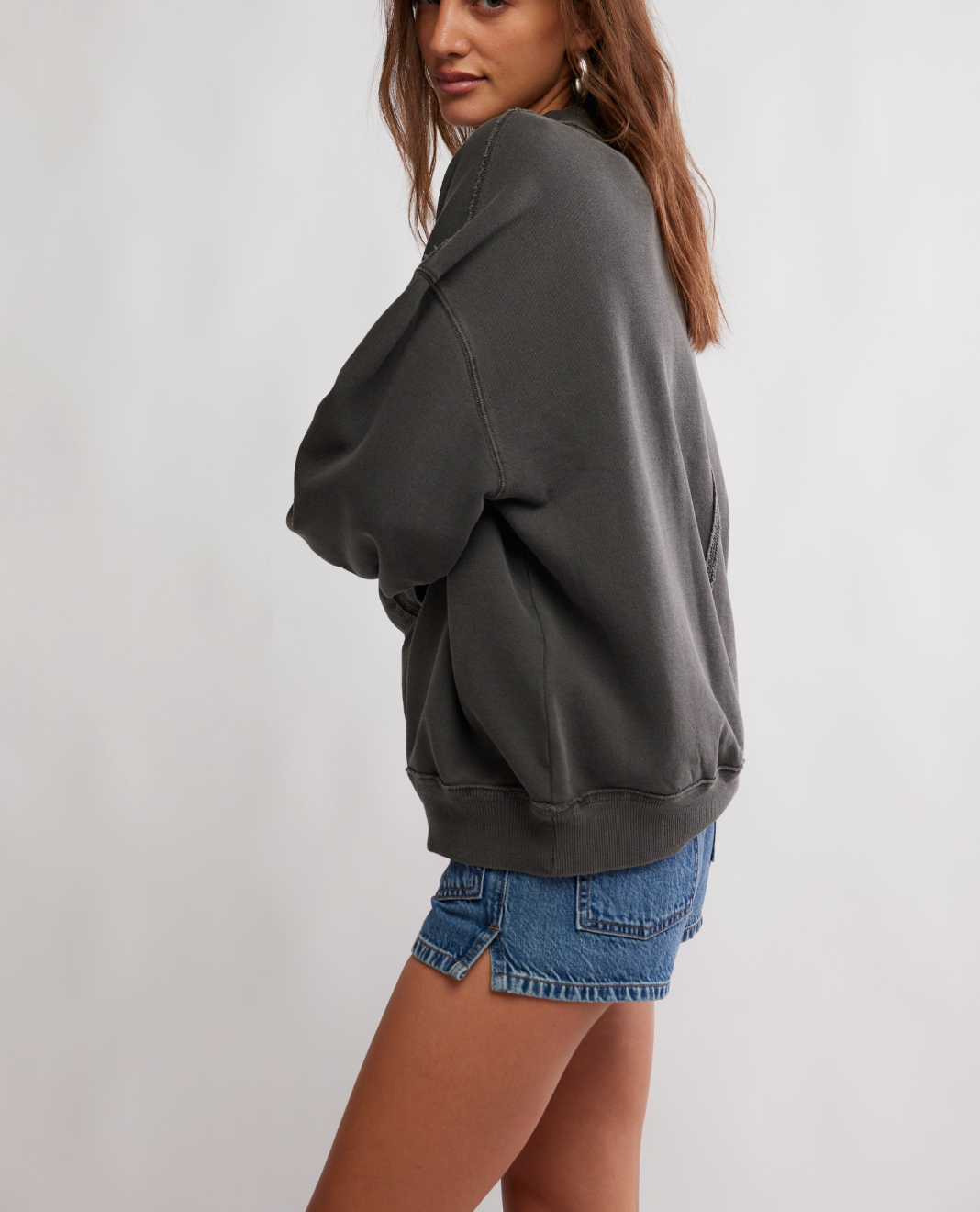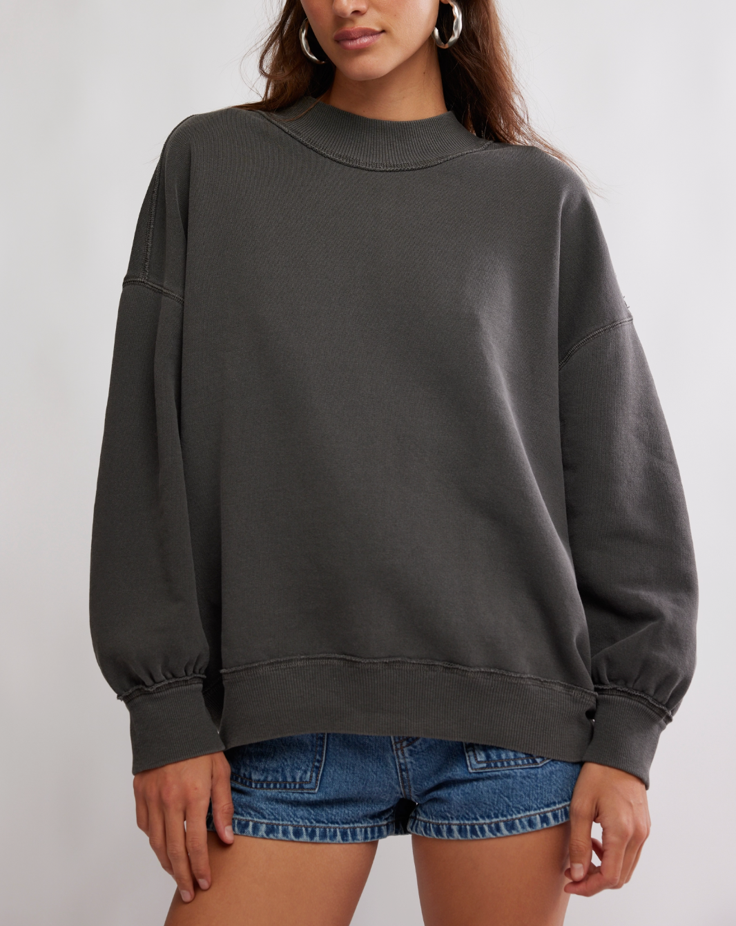 Chill out and cozy up in this oversized pullover from We The Free, featured in a mock-neck style for a unique silhouette you'll reach for over and over again.