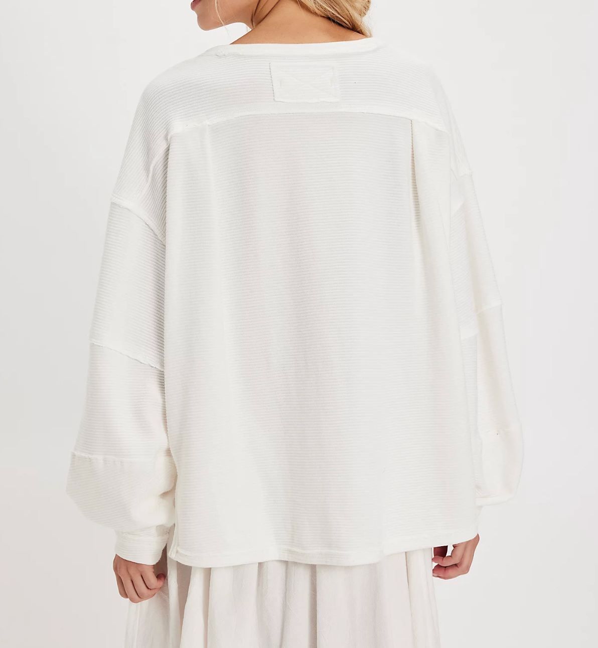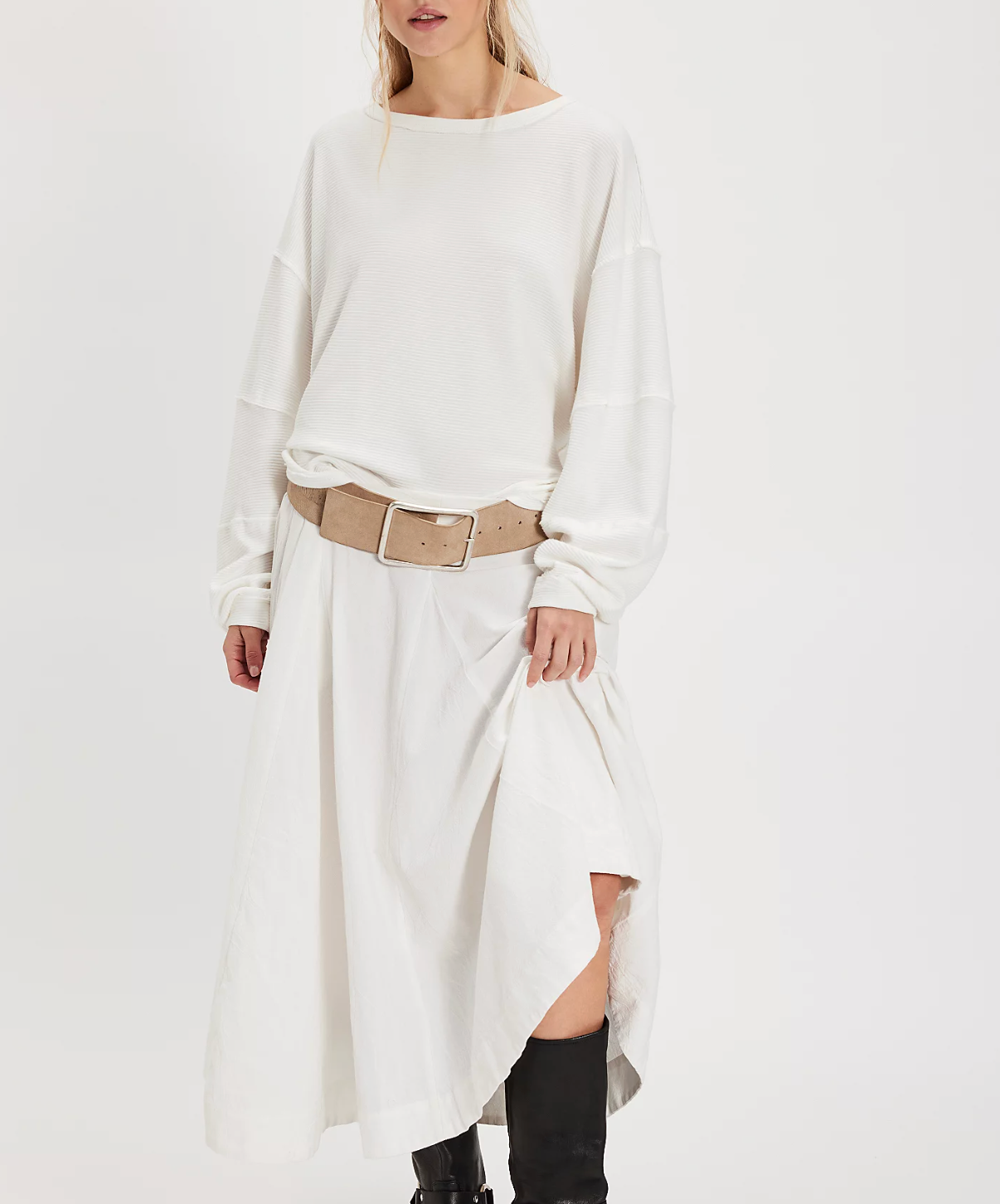 An elevated take on the classic tee, this long-sleeve from our We The Free collection features a ribbed fabrication and slouchy silhouette with defined seams and a scoop-neckline.