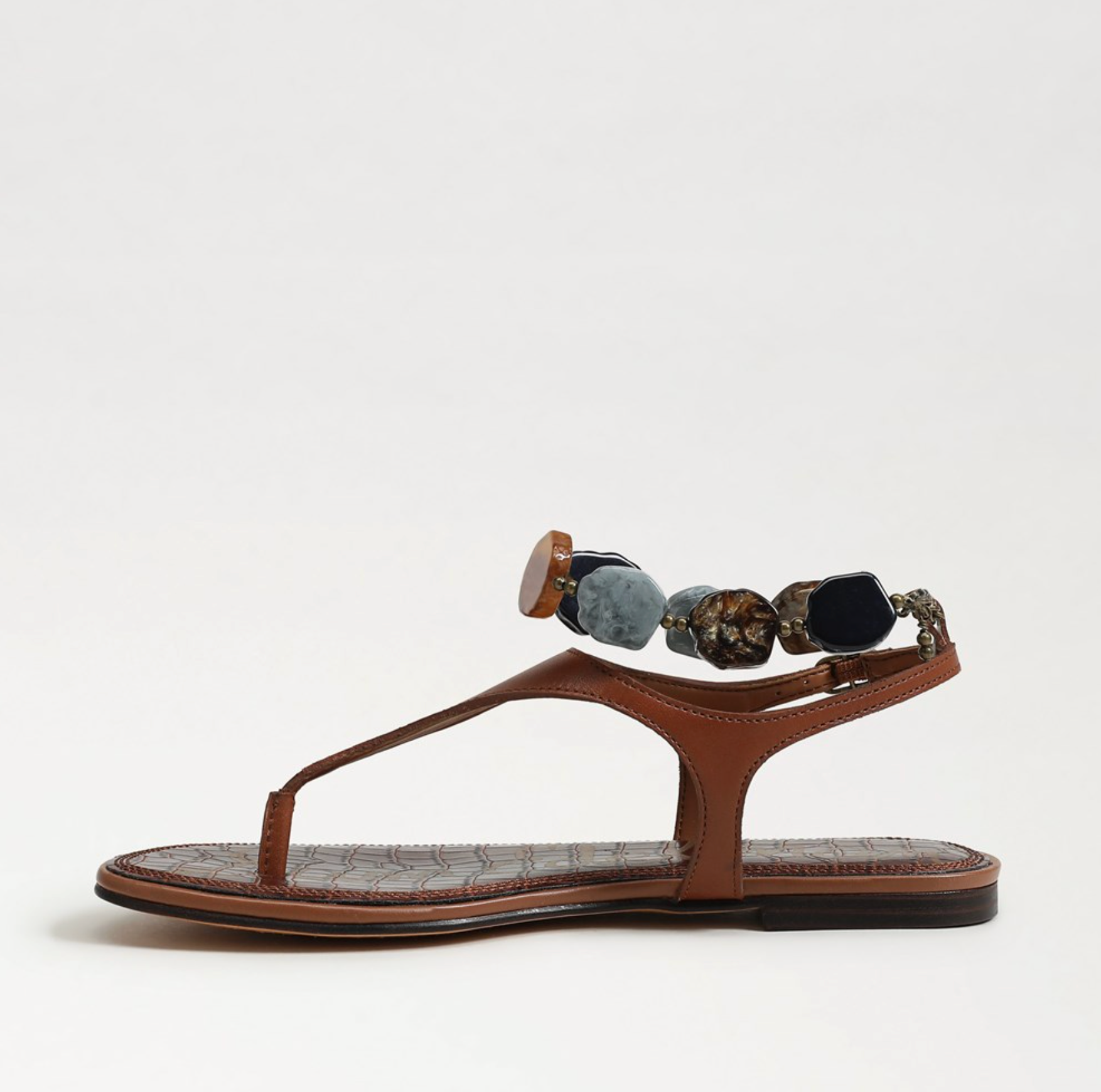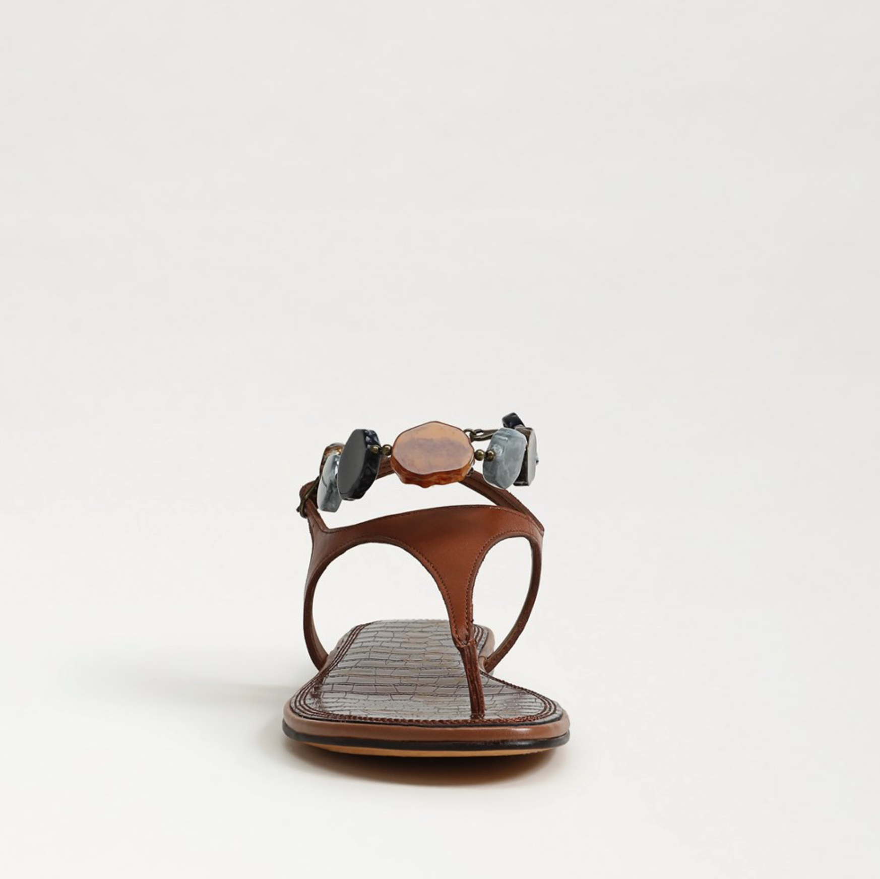 The Canna Thong Sandal is instantly elevated by a bold, sculptural stone anklet. Designed to multitask, the stone piece can be removed and worn as an anklet or bracelet. Its understated silhouette lets the stone details shine with natural dimension. Remove the stones, and you’re left with a classic, endlessly versatile flat sandal that gives you unlimited styling freedom.